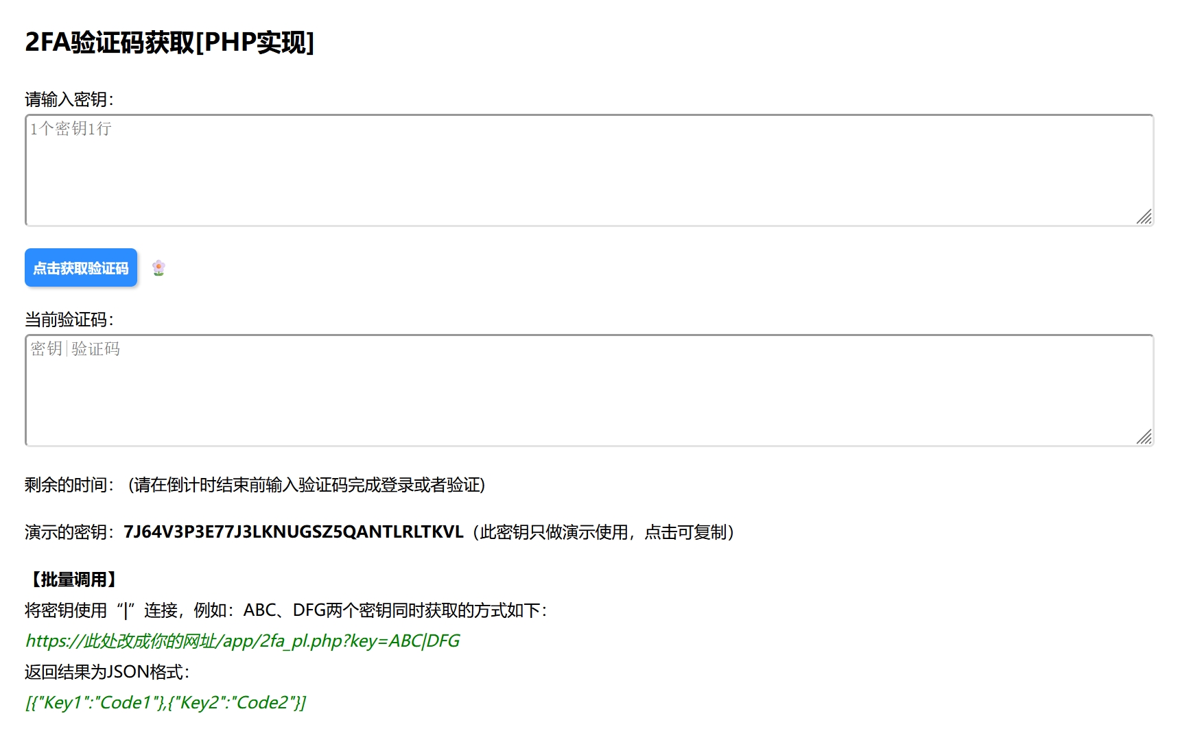 2FA源码(9010)【双重验证码获取工具,包含JS和PHP两种方式】